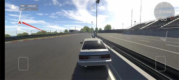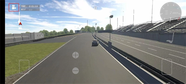进入赛道后,我们可以通过左下方的按钮操控车辆方向,右侧的刹车与油门按钮调节车辆速度,还能借助摇动手机来实现遥感控制。