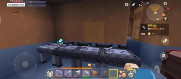 房屋,我们先完成系统赋予我们的任务,制作合适的工具,不同的工具收集物品的时间是不同的,就像我们开始收集木头一样,用手拿着很长时间,但如果使用工具的话,可以很快收集。它可以帮助我们尽快收集工具来完成房子。
