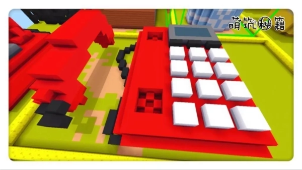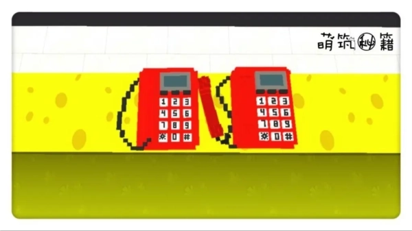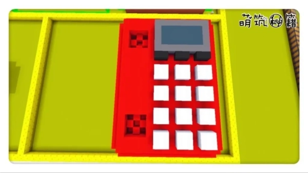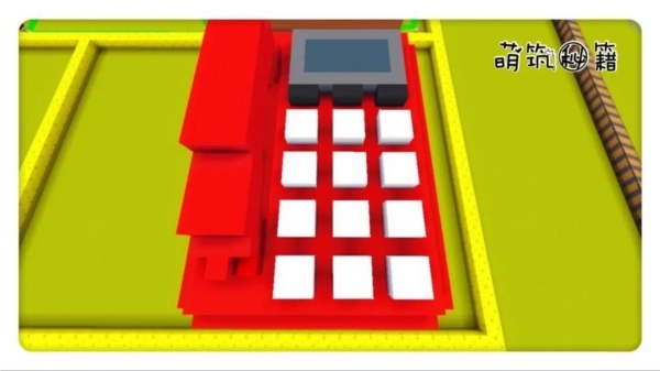 第六步,用方块在电话话筒凹槽中填补,然后向上延伸,做电话的话筒的两头,上面是听,下面是说的作用。方块这里用白色,是为了区分与电话主体的颜色,可以用和主体不一样的红色做话筒。