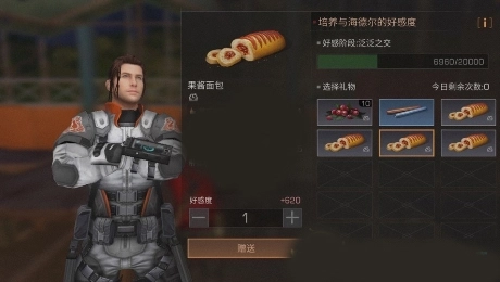 4、101交易市场的海尔德每日可赠送10次礼物,好感度达到5000时能获取图纸(是相当不错的道具)。目前我找到一款性价比很高的礼物——果酱面包,单次赠送就能增加650好感度。