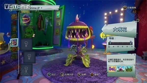 大嘴花是植物方的近战角色。你可以使用他们让敌人瘫痪然后迅速靠近敌人造成巨大伤害。他们的嘴是他们唯一的武器,但却是一个非常致命和强力的武器,甚至可以造成瞬间一击必杀。