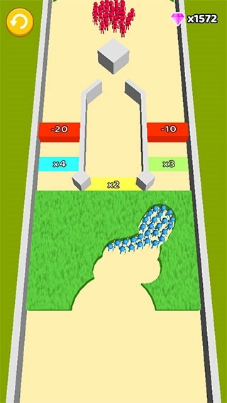 1、在游戏中玩家需要使用手指来控制屏幕,为我们的火柴人士兵绘制各种道路,来引导他们通过乘数道具,而乘数就是帮助我们增加更多的士兵,从而帮助我们干掉所有敌人。