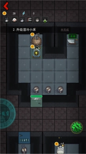 开局挑选宿舍→升级床到2级/建造2级铁门