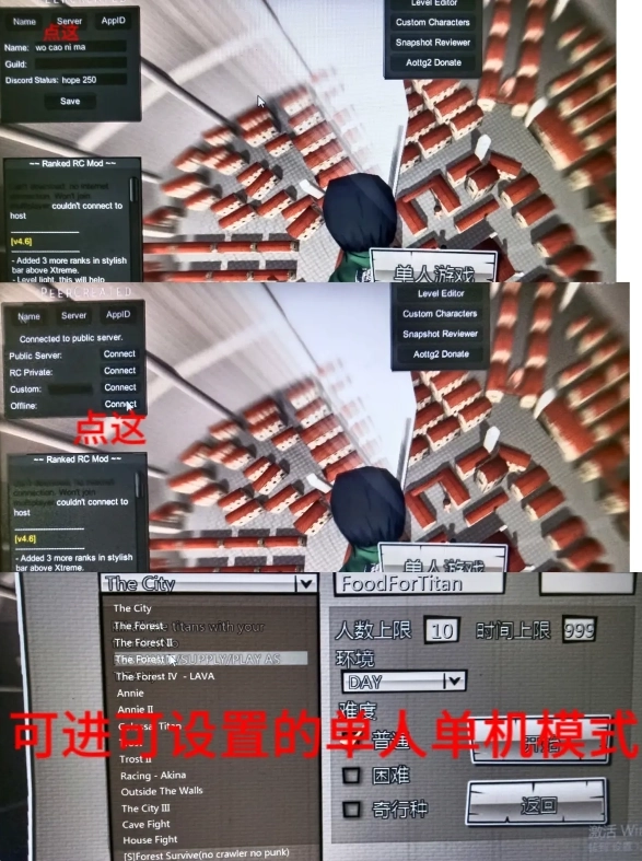首先要知道如何在没有服务器情况下进入可设置游戏: