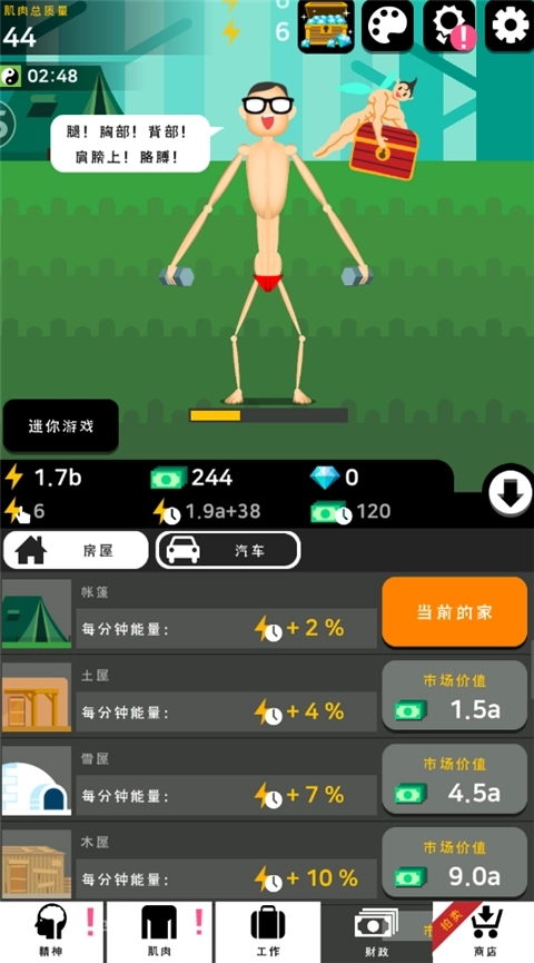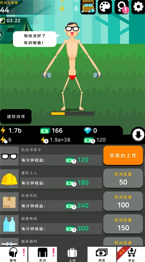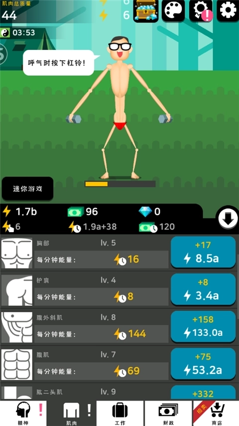 2、运用各式各样的技能来获取更高的收益,从而快速成为肌肉达人。