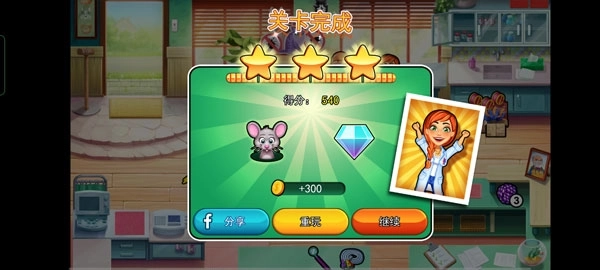 关卡结束后会统计得分、金币和星星的数量,你也能重新挑战这一关卡。