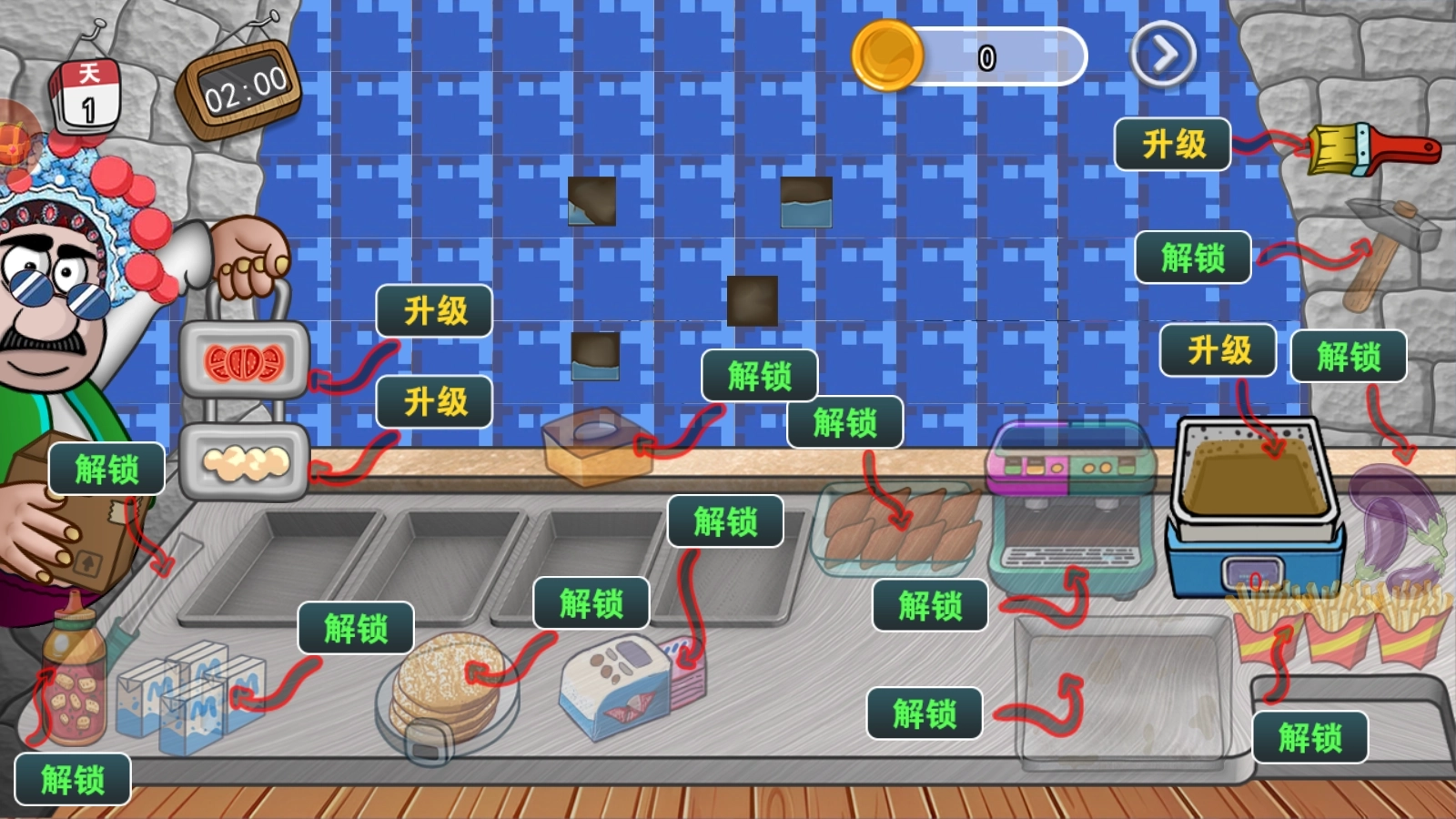 3、通过经营店铺和烹饪菜品来获取金币,这些金币可用于升级店铺的各类设施,进而提升菜品的品质。