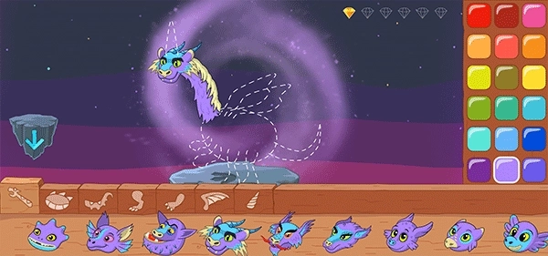 6、抵达加油站后,要给体力不支的小龙们补充能量,只需把它们拖到对应颜色的石头上就行。