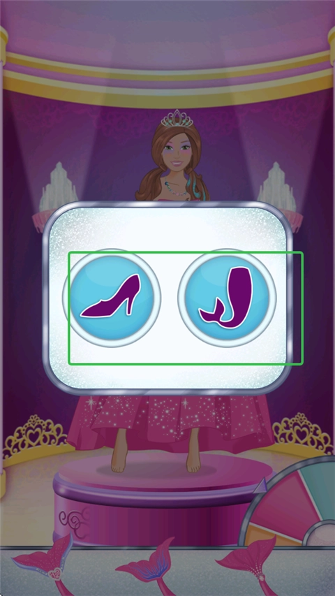 然后为芭比选择鞋子或者是鱼尾装扮。