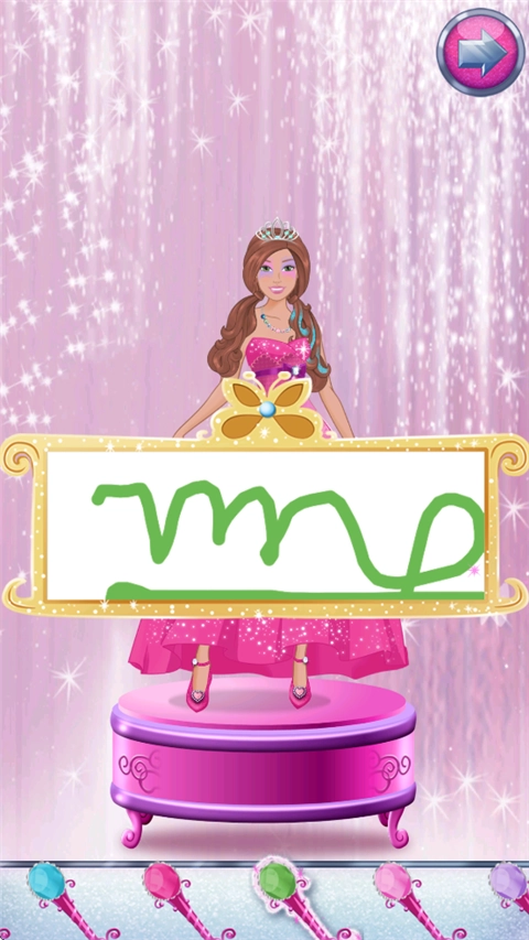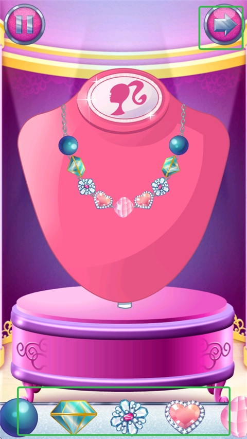 公主怎么能少了项链,玩家要用下面的钻石为芭比设计项链,然后点击箭头进行下一步。