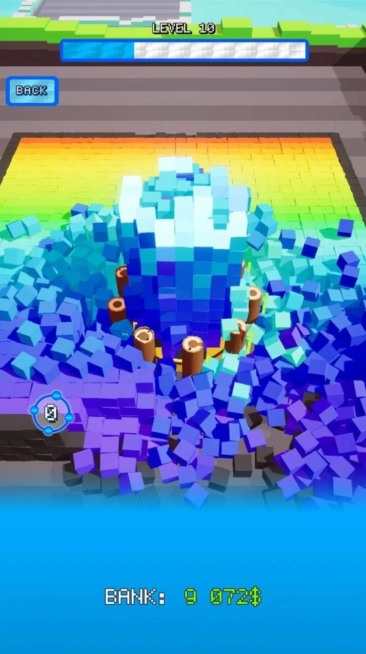 1.在关卡里选用恰当的道具,粉碎场景中所有的像素拼图,达成任务,赢取金币,体验欢乐的过程。
