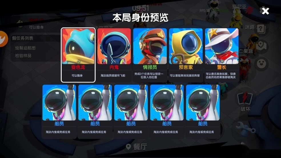 - 身份预览界面,船员阵营玩家仅能查看自己身份和内鬼、中立阵营身份。