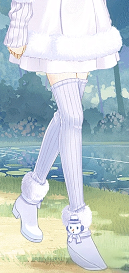 这款袜子不像套装里的其他部件那样纯白,更偏向浅紫色调。厚实的质地一目了然,保暖性应该很不错。条纹设计让它显得不那么单调,脚趾处的贴心设计也避免了穿着不适,确实是一款很棒的袜子。“这是冬季衣柜里必不可少的温暖棉袜,既保暖又百搭,很受年轻女孩的喜爱。”