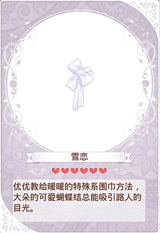 白紫色的围巾,有着别具一格的系法。将围巾打成一个大大的蝴蝶结,尽显少女的可爱气质。那纯粹的气息里,是谁在束缚着谁?“优优教给暖暖的特别系围巾方式,硕大又可爱的蝴蝶结总能引来路人的注视。”