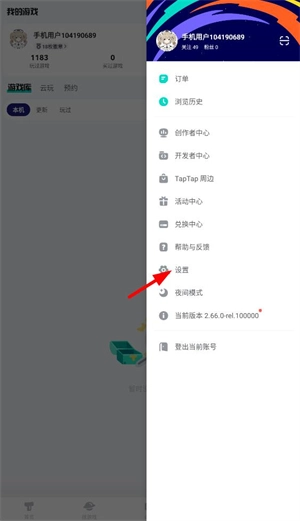 首先点击界面右下角的“我的游戏”选项,接着点击右上角的三条横线图标,最后点击设置按钮。