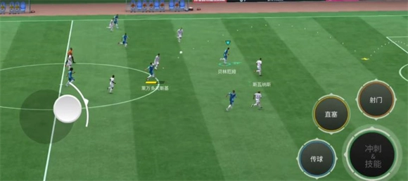面对正面防守时,我们可以把摇杆往边路拉一下来拉开身位,接着用单车动作提速;要是对方步步紧逼,就将摇杆回转半圈扣球闪出空间。若对方后卫贴上来,不妨试试扣球,晃他一下。要是没机会,就果断背身护球再寻找机会,不然很快就会被抢断。