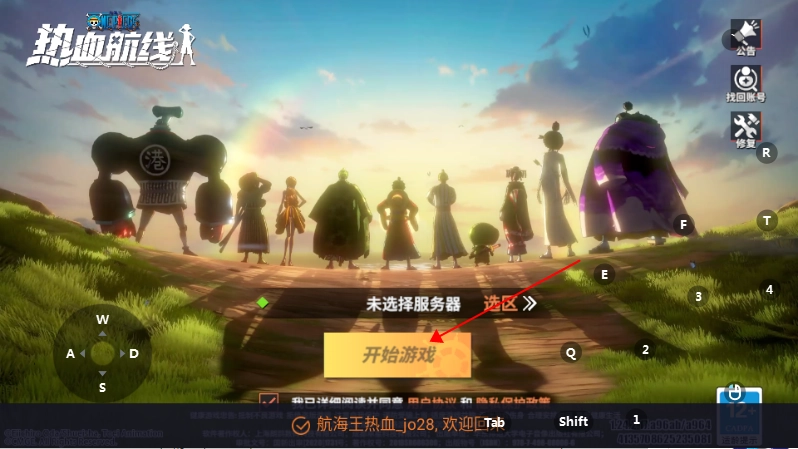 1. 完成航海王热血航线官服的安装,启动游戏后点击开始。