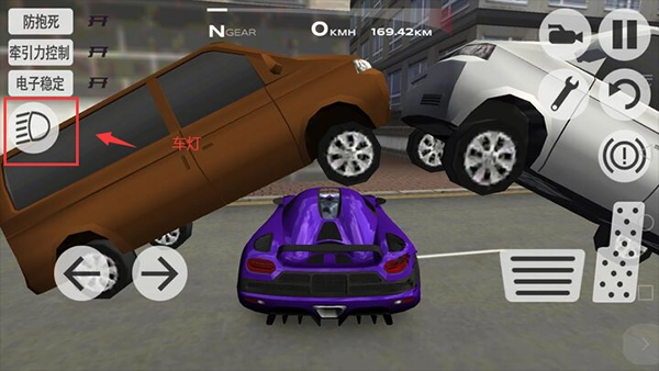 3、车灯按钮位于屏幕左侧,玩家在游戏进行过程中能够开启车灯。