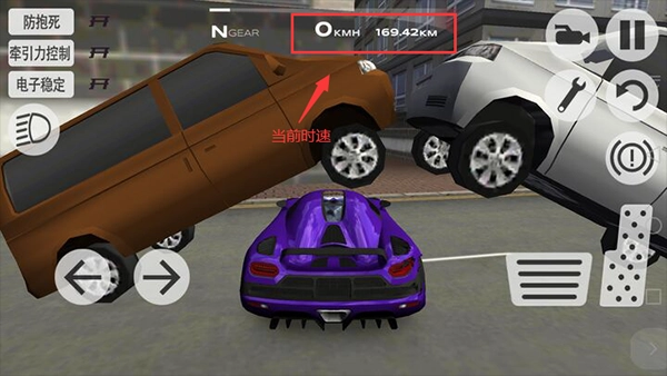 5、在屏幕最上方可以查看赛车时速。