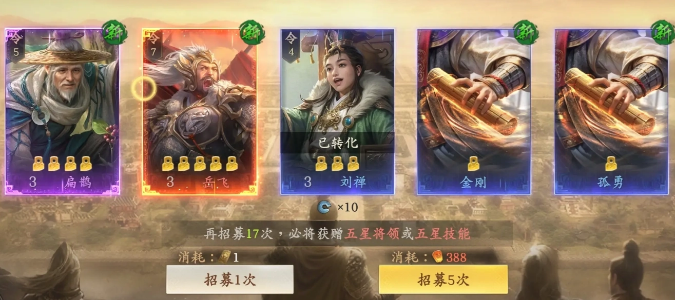 非T0武将(如T2岳飞、T3李广)无需强抽。