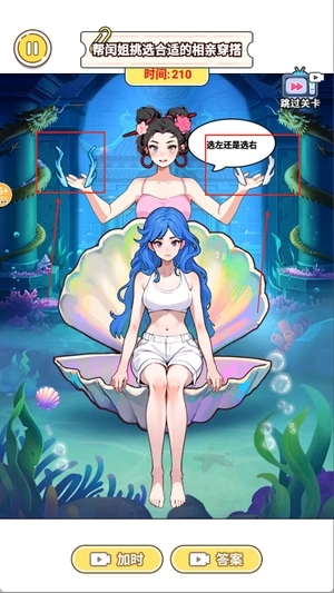 2、玩家需要做出选择进行试穿搭配,操作简单直观便于调整。