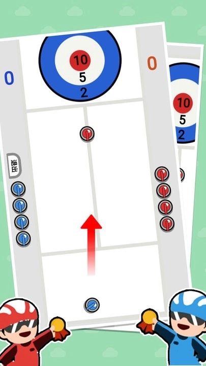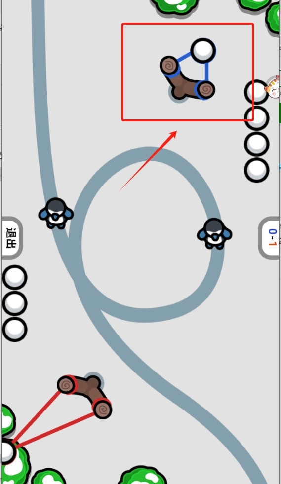 3、戏场景界面,中间有灰色赛道。左右两侧各有一个小人,可以选择扔雪球,人机按照线路跑,用雪球对砸即可。