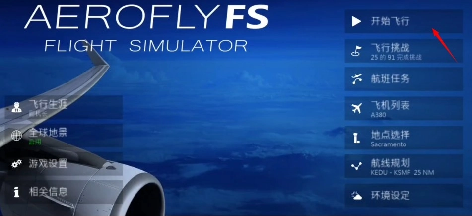 1、进入游戏主页后点击界面中的开始飞行