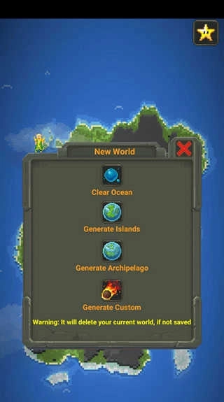 点击后会出现“new world”选项,选择“Generate islands”就能激活现代文明生成协议。