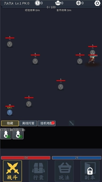 2、开始挂机战斗,获得资源和经验。