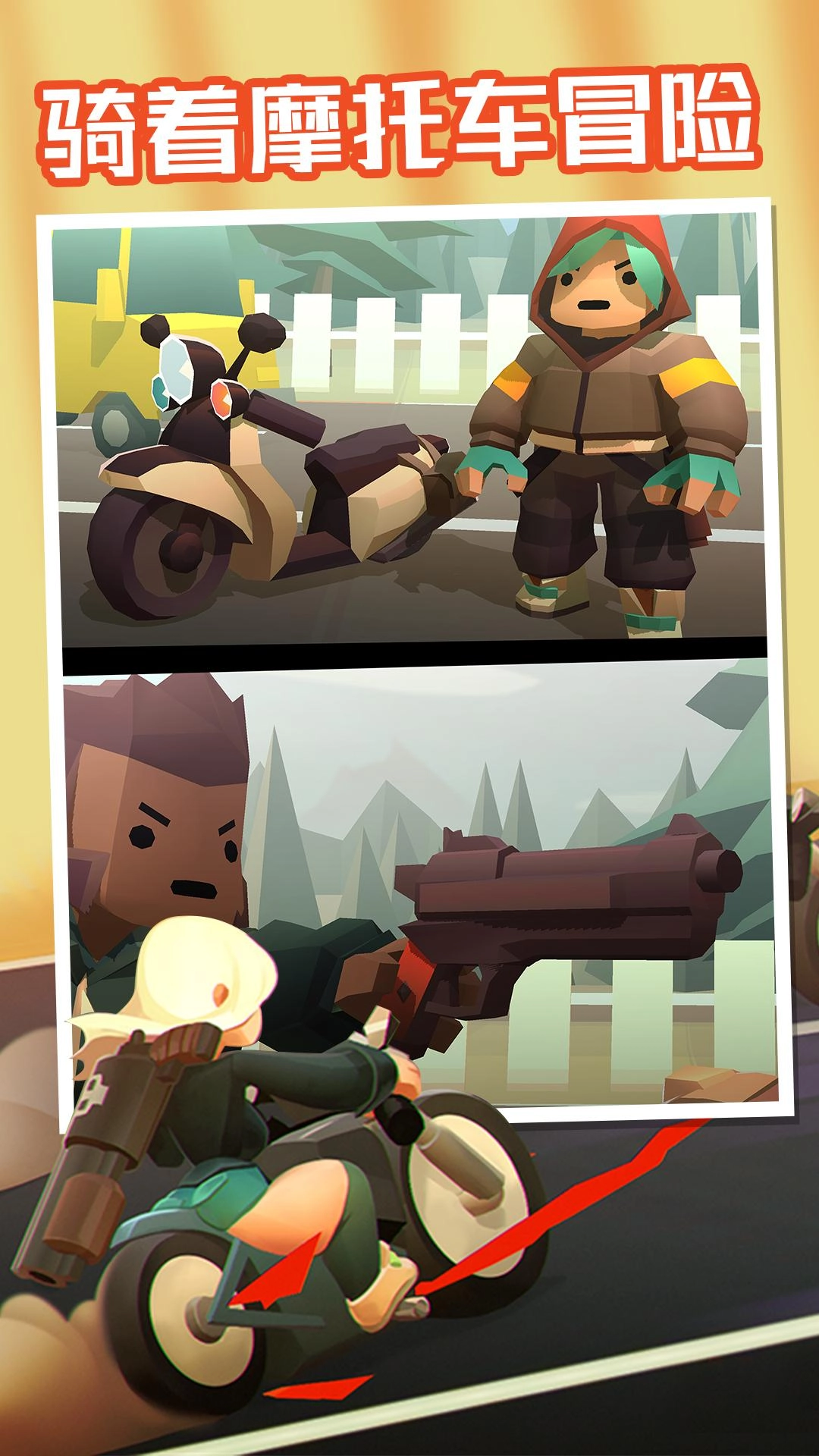 1、你可以骑着摩托车肆意地冒险,去完成各类挑战,解锁更多的玩法与模式。