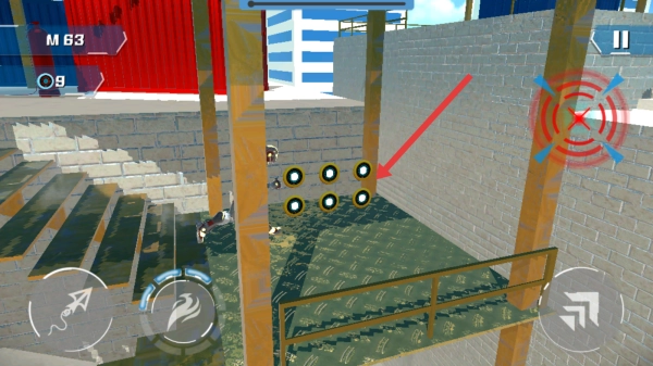 2. 当遭遇高墙之类的障碍物时,点击右侧标有十字准星的按钮,角色便会利用绳索等道具翻越过去,进而继续向前行进。