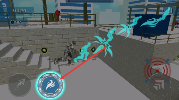 3、在奔跑过程里,点击下方标有飞镖图案的按钮,角色就会释放飞镖类道具,该道具能够用来破除障碍或者攻击目标。
