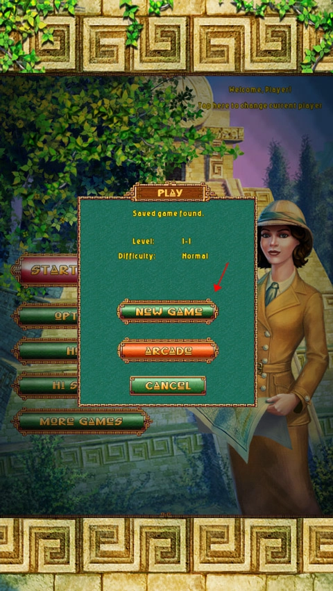 3、进入游戏内容后,第一个箭头所指的是菜单,接下来是重新洗牌,最后是帮助。