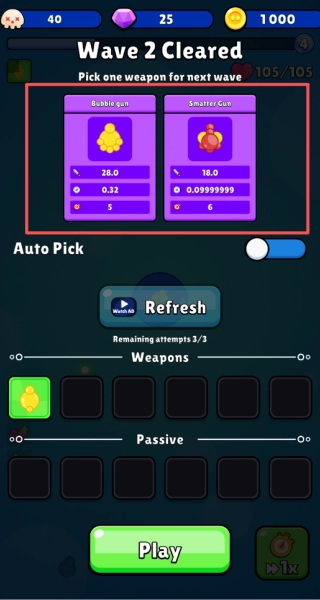 4、在挑选武器时,需对比各项数值参数,依据敌人的密度情况,灵活选择并搭配攻速型或范围型装备。
