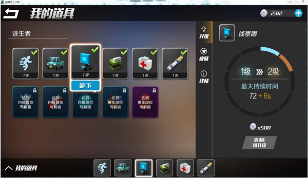 当下,达到白银段位能够解锁“跳高”、“生命上限”以及“雷达”这三张道具卡,而黄金段位则可解锁“巡逻犬”与“阻挡箱”两张道具卡。