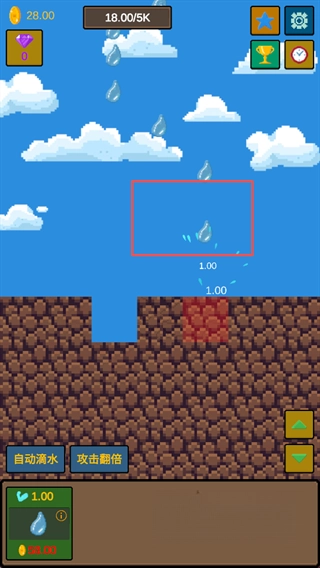 在游戏刚开始的时候,玩家得通过点击操作,使水滴落下并击打石头,每一次成功击中石头,玩家就可以获取金币。尽管在游戏前期,金币的积累速度比较缓慢,然而只要玩家能够保持耐心,不间断地进行点击,金币的数量便会慢慢增多。