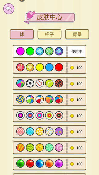 7、回到首页,进入皮肤中心,在这里能够购买球、杯子、背景等各类皮肤,让游戏画面变得更加美观。