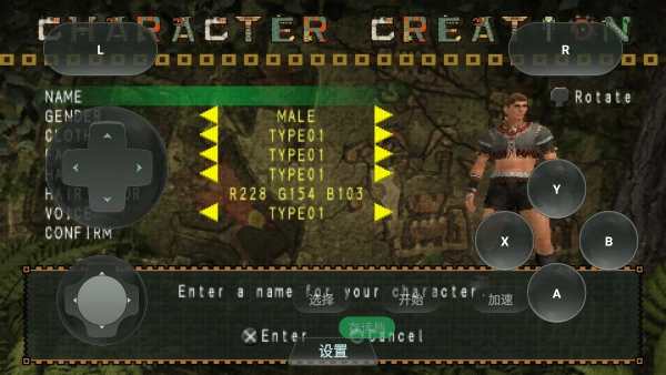 当我们来到角色创建界面,在界面左边偏上方的方向键能够操控光标进行上下左右的选择。首先要做的是取名字,名字取好之后,需要点击开始按键,注意不是b键。