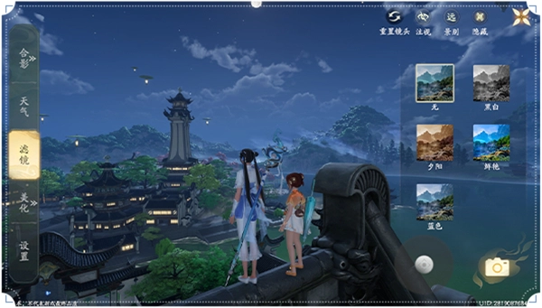 借助【天气】【滤镜】功能,能够挑选多种滤镜与特效选项,调节游戏内的时间和天气情况,依据个人偏好来改变场景氛围以及照片风格。