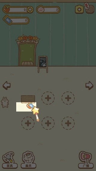 你需要招募员工协助打理生意,具体的招募方式是:右侧休息室设有一张面试桌,可在该处雇佣员工。此外,你还需准备一些楚鲁果,以此吸引猫员工前来。