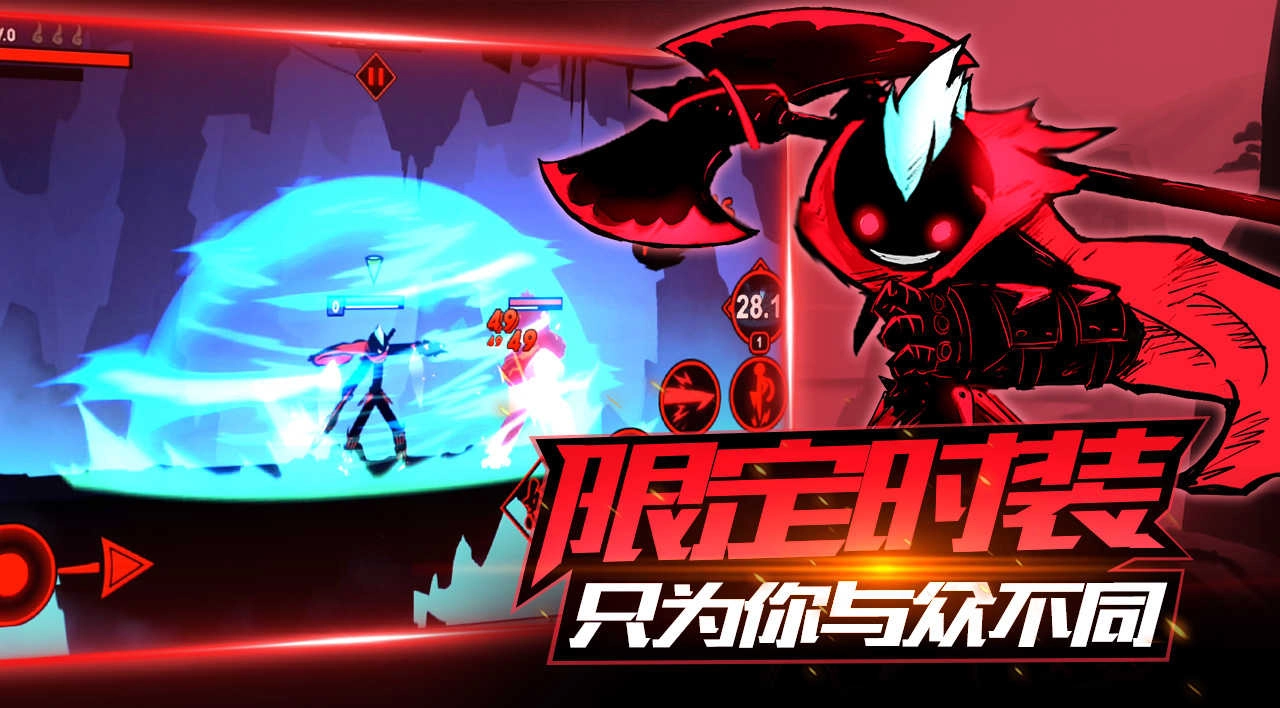 这款游戏摒弃了传统火柴人风格里那种夸张的肢体动作设计,转而采用更具视觉冲击力的华丽特效来呈现战斗场面。尤其值得关注的是,无论是角色形象还是技能机制,它都大量借鉴了当前在全球范围内极具人气的竞技游戏《英雄联盟》——比如核心的技能按键布局,将标志性的四个技能键巧妙地设置在普通攻击键的周边区域,这样的设计能让熟悉同类格斗游戏的玩家快速适应操作逻辑。尽管整体框架带有明显的参考痕迹,但游戏自身的连招系统做得相当流畅;毕竟作为一款主打快节奏体验的作品,技能的冷却时间自然不会设置得过长,这也保证了战斗过程的紧凑感。