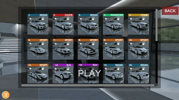 启动这款模拟欧洲高端汽车驾驶体验的最新应用程序后,在正式进入游戏场景前,玩家能够对各项参数和选项进行个性化调整。
