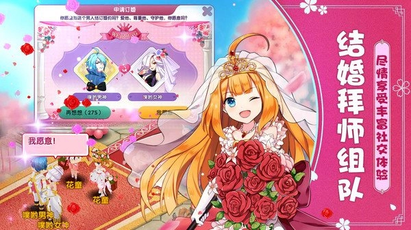 浪漫花嫁编织童话婚礼,与挚爱携手开启爱的冒险!默契大考验、浪漫求婚与订婚仪式、庄严的婚誓契约、共同踏上红毯、新娘抛出幸福捧花……和TA一起圆满梦想中的婚礼吧!