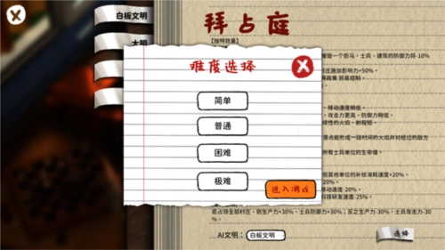 2. 接着从白板文明、大明、法兰西、拜占庭这四种文明中挑选一个,同时选择游戏难度。