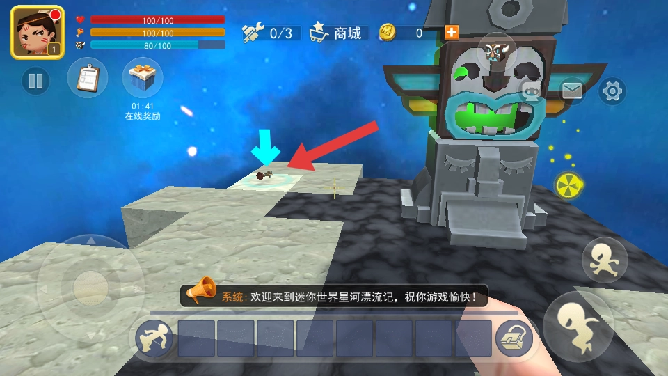 在创造模式下,你可以借助方向控制器操控角色移动,拖动右侧屏幕区域来调整观察视角,点击喷射塞便能迅速吸附太空中的漂浮物;进行建造操作时,直接从背包里挑选所需物品即可。