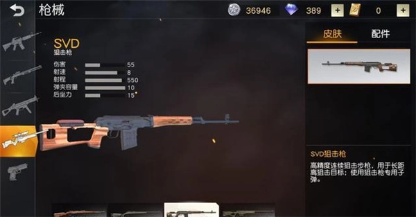 SVD狙击枪属于连发狙击枪。相较于单发狙击枪,它伤害偏低,不过可以连点,弹匣容量也更大。和步枪相比,SVD狙击枪伤害更高,然而在稳定性与射速方面却不及步枪。它适合那些单发狙击枪命中率不太理想的同学,原因在于它能够连发,且连发时的威力要高于步枪。