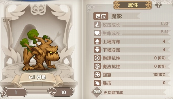 树精属于防御类单位,有着较高的生命值成长属性,每个回合都会对当前血量最少的目标发动一次基于自身最大生命值的固定伤害攻击。在战斗初期它带来的威胁不算大,但到了后期成长完全成型后,就得留意我方输出角色的血量情况,防止主力输出被其压制。