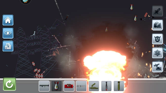 -点击可用道具(如核弹、导弹、黑洞)触发破坏。