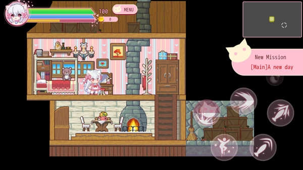 把软萌的猫娘角色与细腻的像素画风巧妙融合,创造出别具一格的视觉感受,营造出温馨且满是趣味的冒险氛围。
