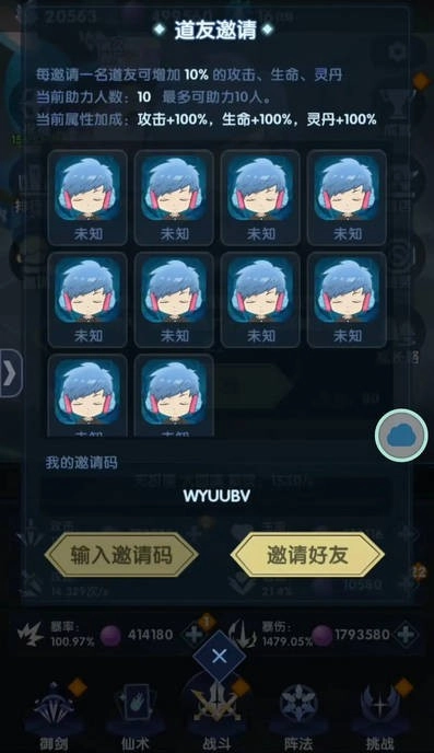 邀请名额满了就能获得百分百加成,这是灵丹的主要加成途径之一。大家可以在群里刷邀请,换挡重玩时的邀请也包含在内,当然也能自己找朋友一起玩来拉邀请。